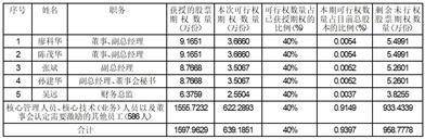 注:1、上述任何一名激励对象通过全部有效的股权激励计划获授的本公司股票均未超过公司总股本的1%;