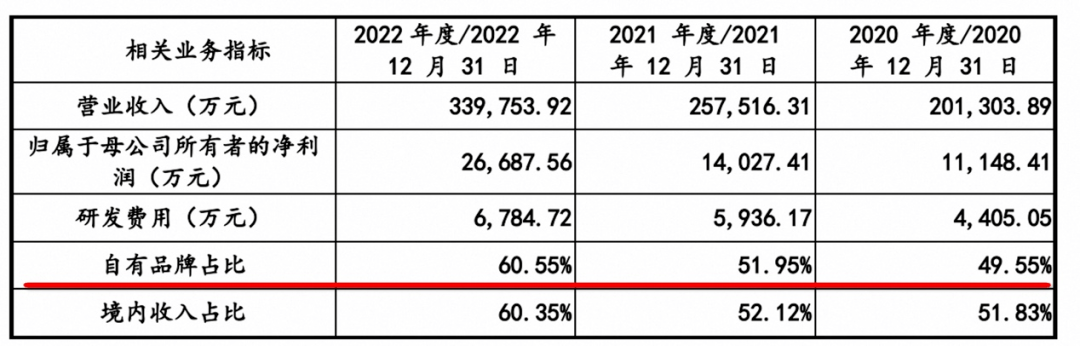 乖宝招股书显示,2020年-2022年,乖宝的自有品牌营收占比分别为49.55%、51.95%、60.55%,呈现逐年增长趋势,至今占比已超过一半。这也意味着,乖宝已经通过自有品牌开辟出了新的增长曲线,正在逐步摆脱对传统代工业务的依赖。