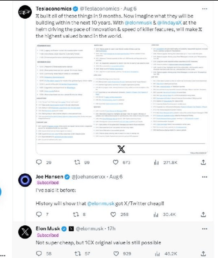 有网友评论称:「历史将会说明,马斯克买推特/X占到了便宜!」