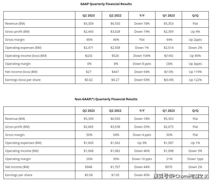 AMD公布2023第二季度财报 营收下滑但扭亏为盈
