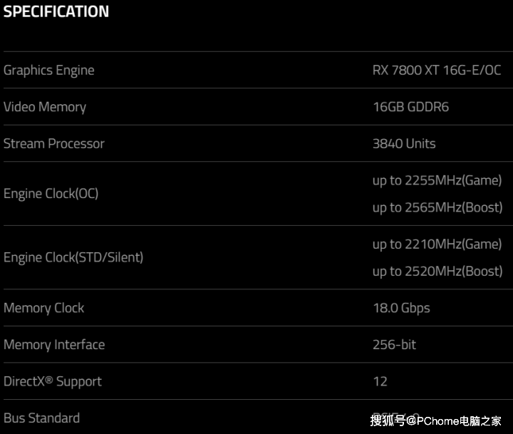 根据泄露的产品信息来看,全新的RX 7800 XT采用基于RDNA 3架构的Navi 32 GPU,拥有60组CU单元共3840个流处理器,相较上代RX 6800 XT的4608个更少,和RX 6800相同,RX 7800 XT Red Devil的游戏频率是2255MHz,Boost频率是2565MHz,而产品页面上也公布了公版频率为2210MHz和2520MHz。