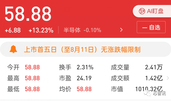 8月5日,国产晶圆代工大厂华虹公司(688347)正式登陆科创板。股价开盘大涨13.23%至58.88元/股,市值达1010.32亿元。