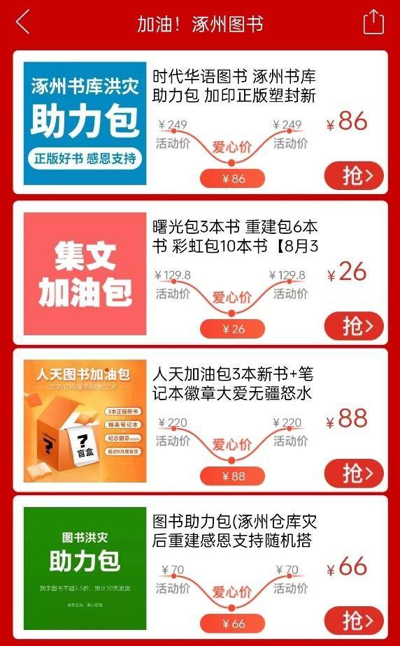 除了专场活动,拼多多还为受灾书商提供流量倾斜、直播带货、免除佣金等帮持举措。此次“加油涿州图书”专项活动,还为河北地区更多受灾的中小图书商家提供帮助,可以通过邮箱zhaoshang@pinduoduo.com 直接联系拼多多官方。