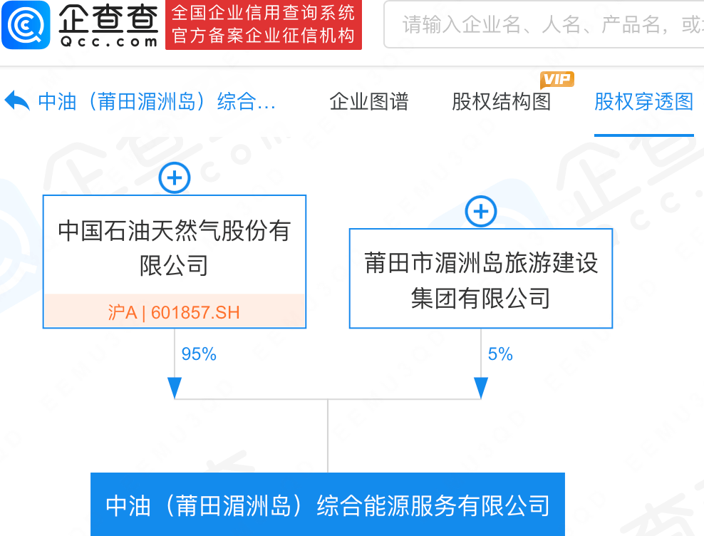 企查查APP显示,近日,中油(莆田湄洲岛)综合能源服务有限公司成立,法定代表人为吴洁,注册资本1900万元人民币,经营范围包含:电动汽车充电基础设施运营;集中式快速充电站;光伏发电设备租赁;蓄电池租赁等。企查查股权穿透显示,该公司由中国石油(601857)、莆田市湄洲岛旅游建设集团有限公司共同持股。