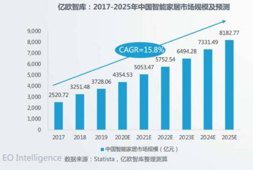 而随着数字经济的快速发展,近年来全屋智能市场发展进入快车道。根据IDC数据,2022年我国全屋智能市场的销售额已突破100亿元,同比增长54.9%。另据亿欧智库报告,预计未来五年,中国智能家居设备市场出货量将以21.4%的复合增长率持续增长,至2025年市场出货量将接近5.4亿台,市场规模将突破8000亿,全屋智能或将逐步成为智能市场增长的重要引擎。