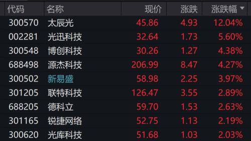 太辰光涨超12%,光迅科技等跟涨。