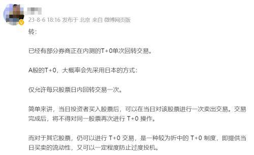 传闻提到,已经有部分券商正在内测T+0单次回转交易,A股的T+0,大概率会先采用日本的方式,即仅允许每只股票日内回转交易一次。