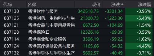 港股市场上,医药板块领跌。
