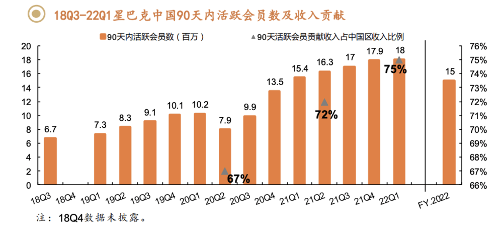 活跃会员对星巴克应对当下竞争意义重大。2022财年,90天活跃会员为星巴克中国贡献了近74%的收入。可以说,活跃会员忠诚度左右着星巴克的业绩增长预期。