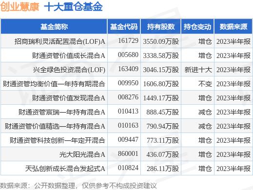 根据2023半年报公募基金重仓股数据,重仓该股的公募基金共22家,其中持有数量最多的公募基金为招商瑞利灵活配置混合(LOF)A。招商瑞利灵活配置混合(LOF)A目前规模为32.98亿元,最新净值2.4269(8月4日),较上一交易日上涨0.68%,近一年上涨24.09%。该公募基金现任基金经理为陆文凯。陆文凯在任的基金产品包括:招商产业升级1年持有期混合A,管理时间为2023年5月29日至今,期间收益率为nan%。