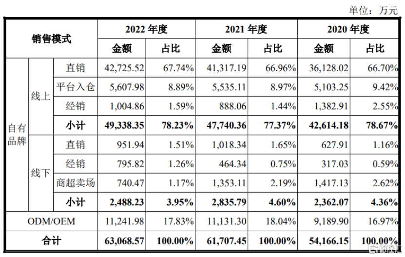 (主营业务收入按销售模式划分,图片来源:招股书)