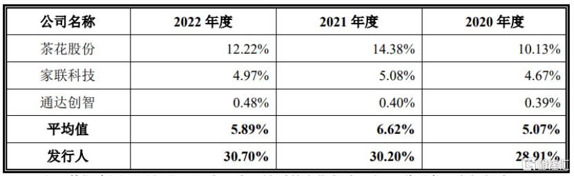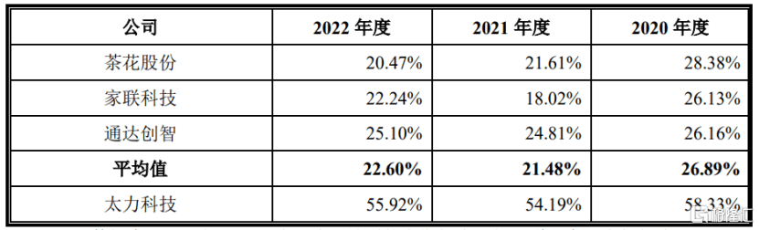 (公司综合毛利率与同行业可比公司的对比情况,图片来源:招股书)