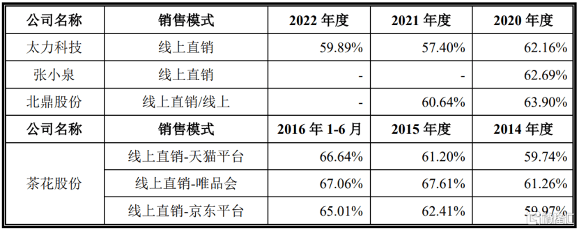 其中,公司线上直销的毛利率分别为62.16%、57.40%和59.89%,低于可比同行业可比公司。