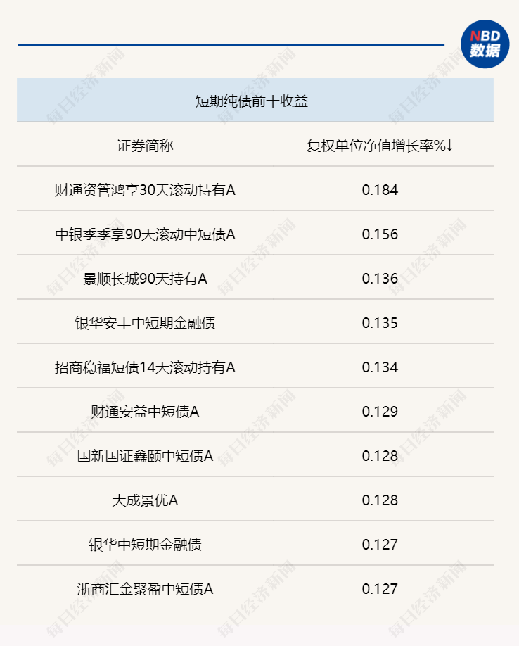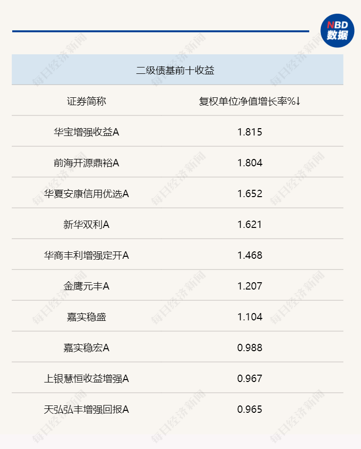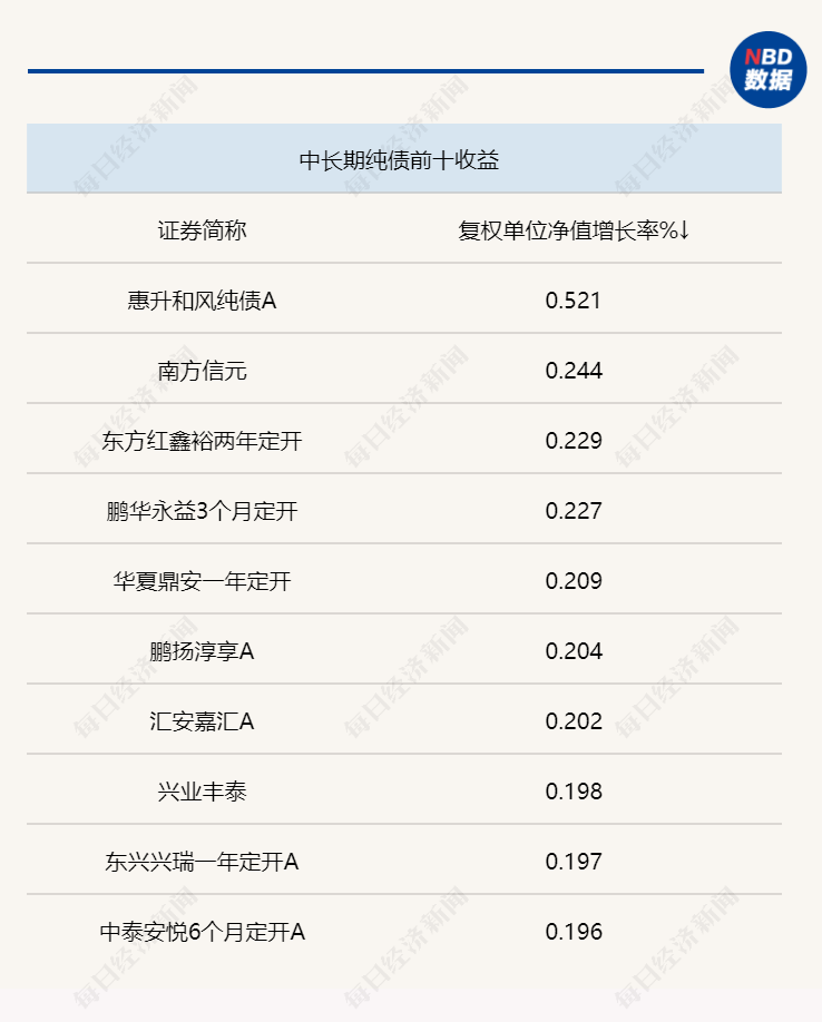 上周各类型债基头部产品业绩 来源:Wind