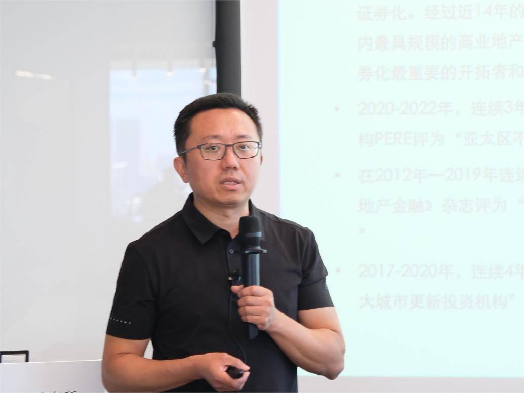 高和资本董事总经理毛跃晖,曾参与国内首单备案CMBS产品的设计和研发。在主题分享环节,毛跃晖总经理介绍了高和的优势和投资逻辑,他表示城市更新是不动产投资的重点方向,并就不动产基金创新业务案例进行了分享。同时,他还分析了不动产私募股权基金的优势,指出发展Pre REITs基金所需关注的核心问题、投资Pre REITs基金的商业逻辑和策略等。