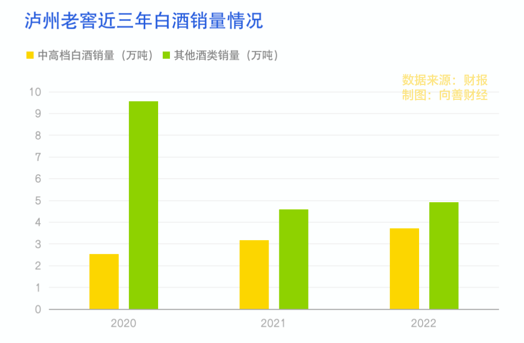 销量上,中高档白酒销量从2.53万吨增加到了3.71万吨,其他酒从9.56万吨减少到了4.9万吨。一增一减的背后,国窖品牌销售规模近200亿元,特曲销量超60亿元,窖龄酒规模突破20亿元。