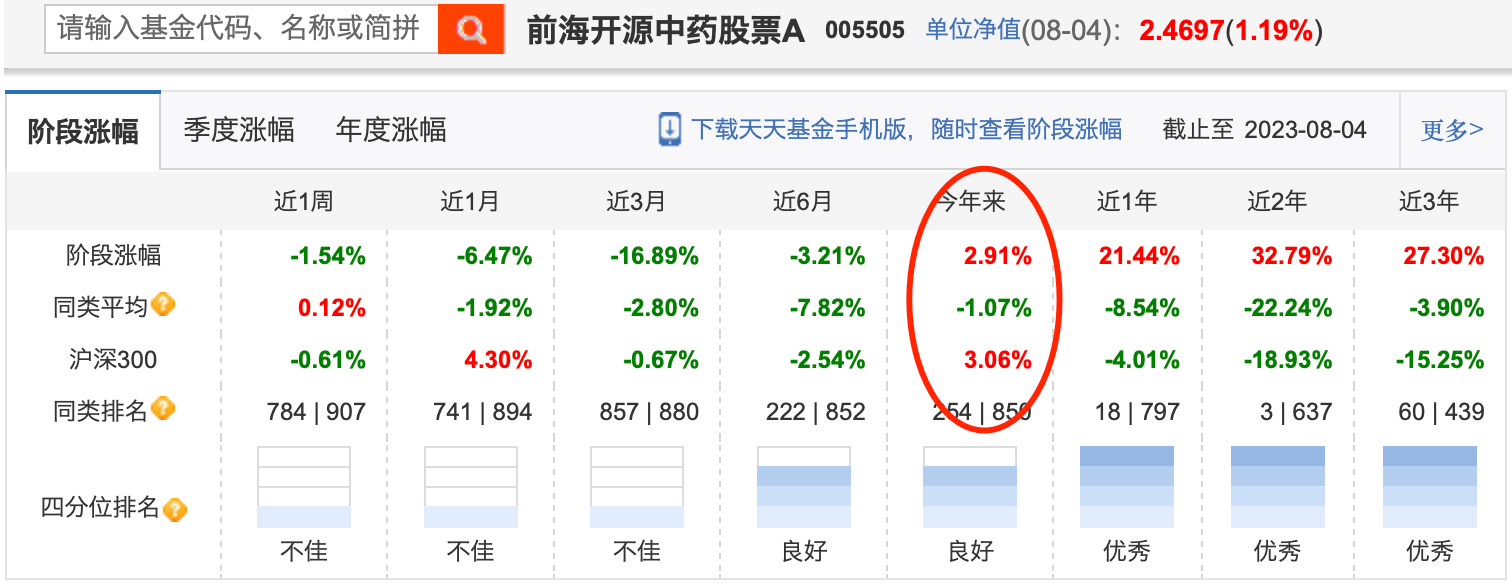 此外,主动型产品中,还有前海开源中药研究精选,今年以来盈利近3%。