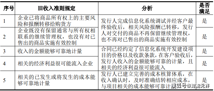 发行人信息化系统开发建设项目采用终验法确认收入,符合旧收入准则,具体对比分析如下:
