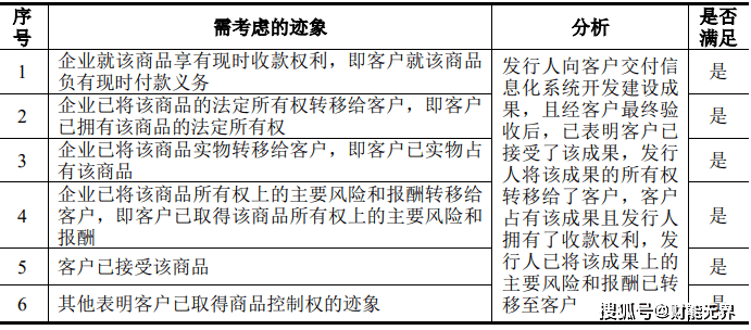 根据上表分析,发行人向客户交付信息化系统开发建设成果,且经客户最终验收后,客户取得商品控制权,发行人应当在项目经终验合格时确认收入。