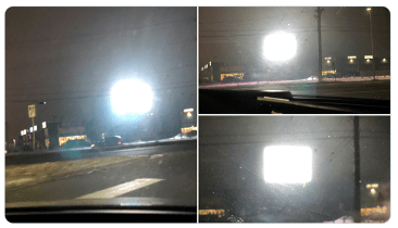 对于走在路上的行人,一个非常亮的广告牌也会引起眩光和不适感。在下面的这张图中,你可以看到,在一个巨亮的灯光下,原本能看清的脸也变模糊了,强光似乎在我们眼前蒙上一层纱,降低了视觉对比度。