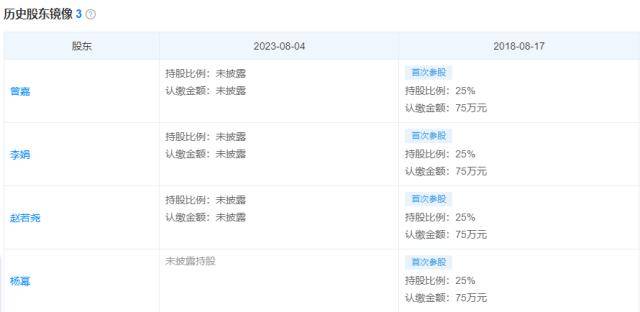天眼查显示,近日,北京世嘉华林文化传播有限责任公司发生工商变更,杨幂退出股东行列,并卸任监事。该公司成立于2014年6月,最初由曾嘉、李娟、赵若尧、杨幂四人共同出资成立,持股比例均为25%。曾嘉任法定代表人及执行董事,目前该公司由李娟、曾嘉、赵若尧三人共同持股。