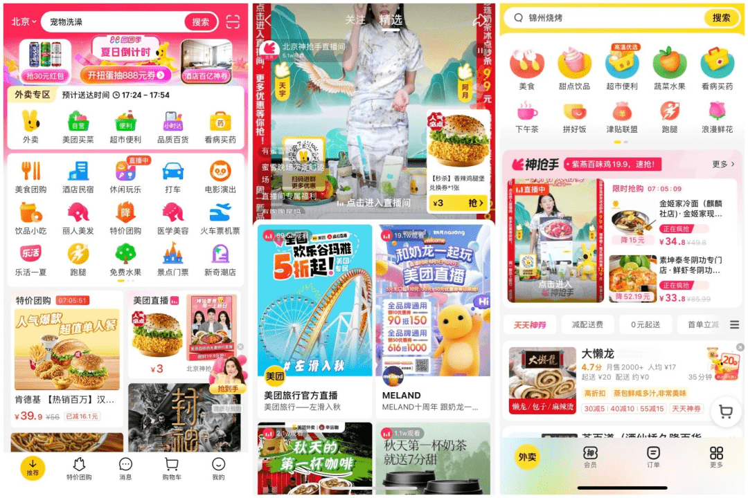 早在2020年,美团就曾先后推出旅行直播、袋鼠直播以及美团Mlive直播三大板块,又在2022年推出美团直播助手,补齐直播基础设施,并在直播中添加了团购、外卖等功能。虽动作频频,但在美团内部,直播战略地位尚未提高。尤其是2022年下半年后,即时零售成为美团新业务的主要抓手,“直播”的身影又暗淡了一些。