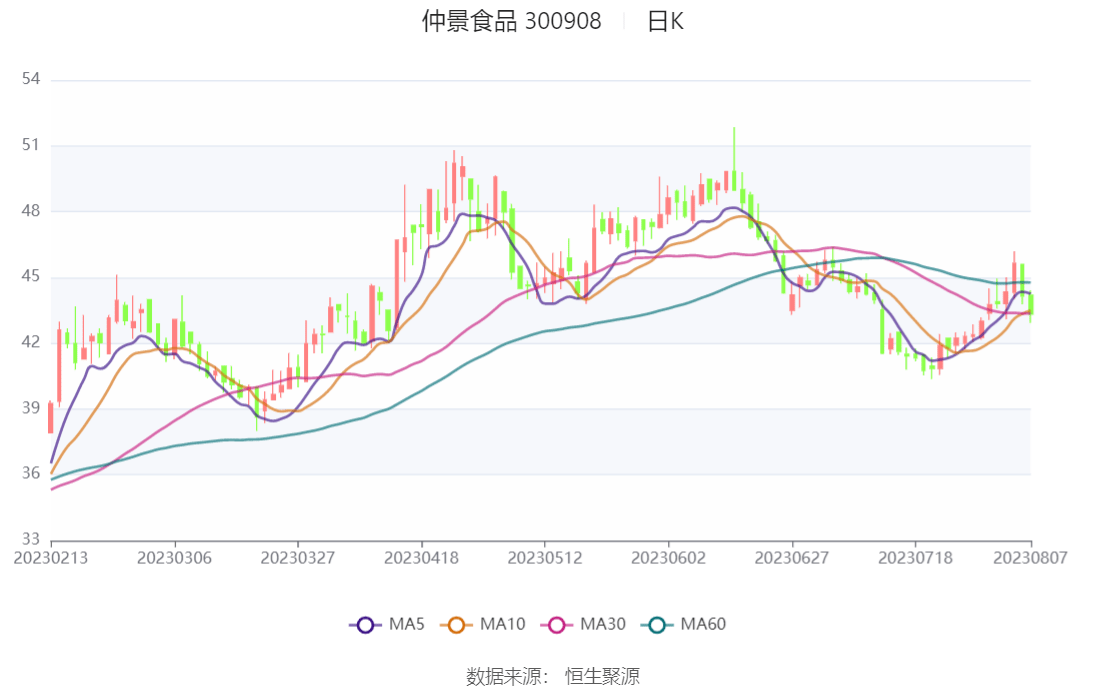 以8月7日收盘价计算,仲景食品目前市盈率(TTM)约为28.43倍,市净率(LF)约2.72倍,市销率(TTM)约4.69倍。