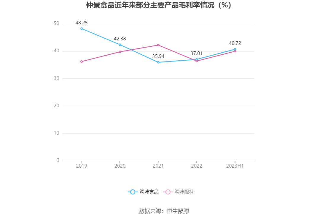 分产品看,调味食品、调味配料2023年毛利率分别为40.72%、39.97%。