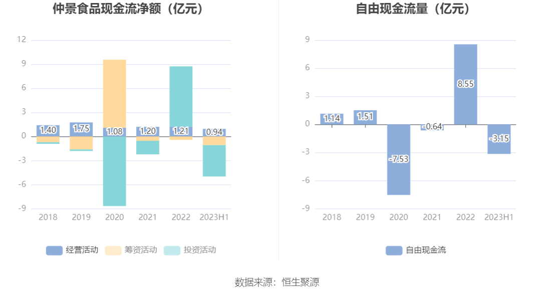 进一步统计发现,2023年上半年公司自由现金流为-3.15亿元,上年同期为0.59亿元。