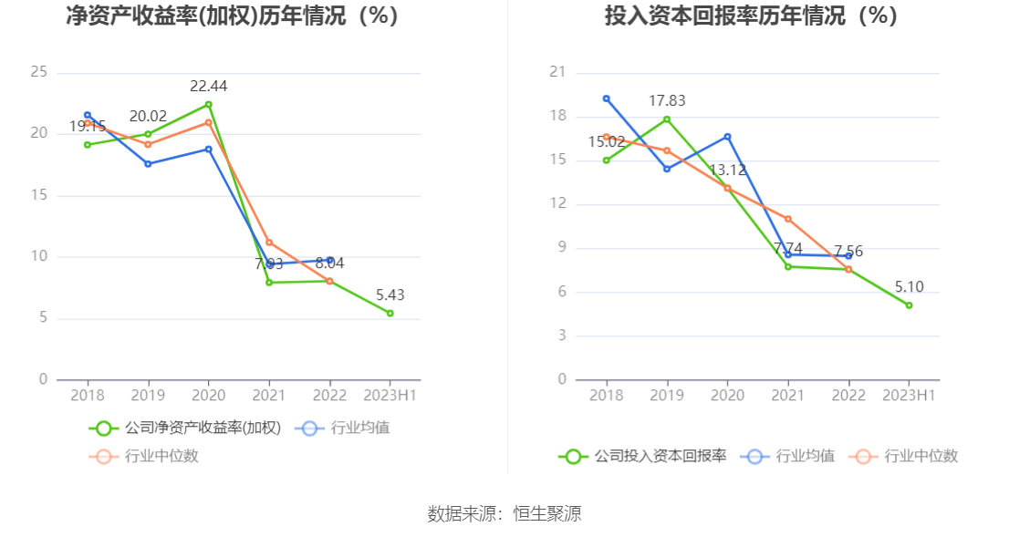 盈利能力方面, 2023年半年度公司加权平均净资产收益率为5.43%,同比上升1.39个百分点。公司2023年半年度投入资本回报率为5.1%,较上年同期上升1.4个百分点。