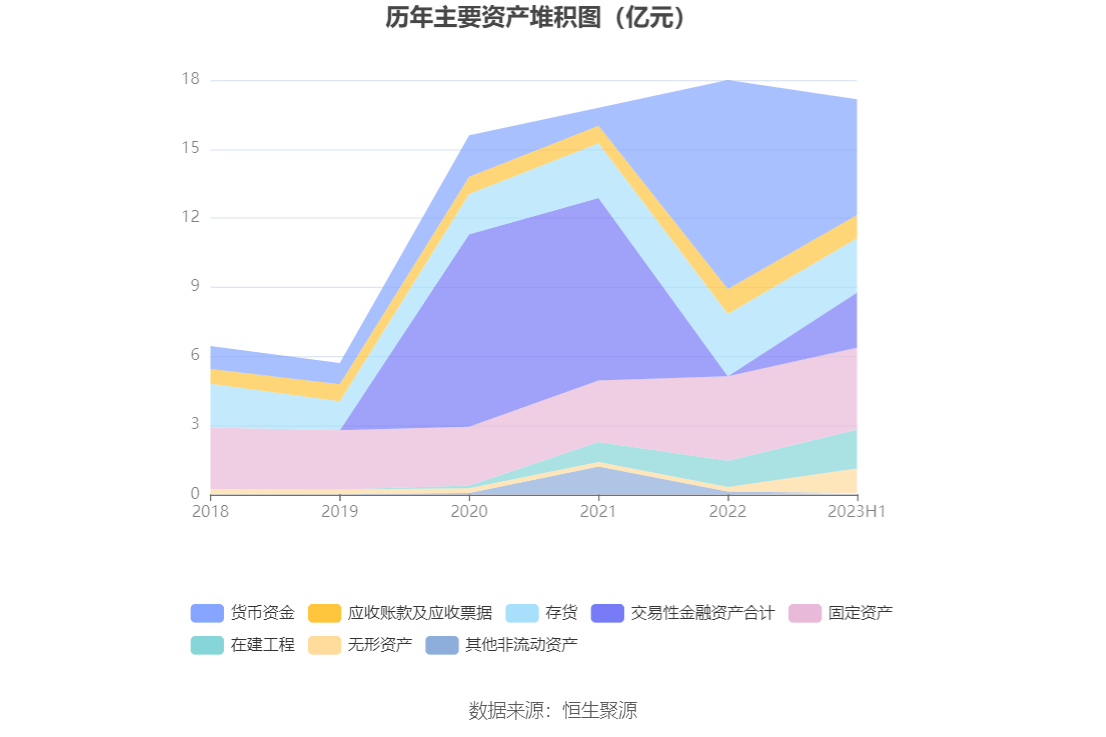 资产重大变化方面,截至2023年二季度末,公司货币资金余额较上年末减少44.72%,占公司总资产比重下降20.98个百分点;无形资产较上年末增加425.83%,占公司总资产比重上升4.99个百分点;在建工程较上年末增加49.07%,占公司总资产比重上升3.53个百分点;存货余额较上年末减少12.93%,占公司总资产比重下降1.31个百分点。