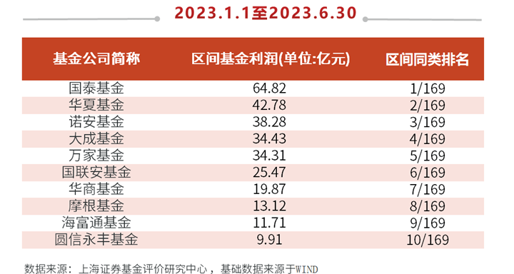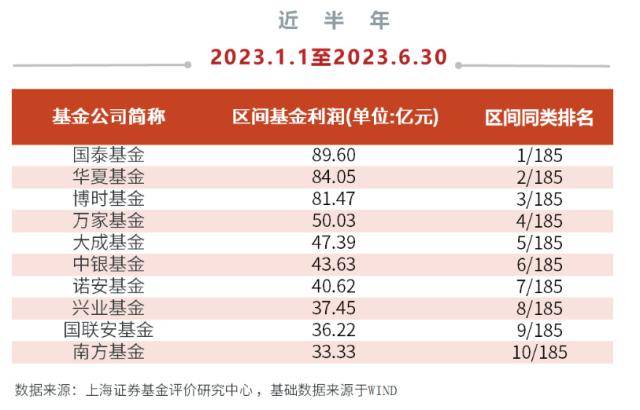 全市场来看,非货口径下,国泰基金、华夏基金、博时基金位列前三,分别为投资者赚取利润89.60亿元、84.05亿元、81.47亿元。市场人士指出,相比通俗的基金收益率,基金利润指的是基金实实在在给基民赚到的钱,是绝对数值而非收益率,在去掉水分后更显“含金量”。