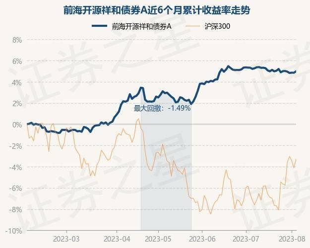 8月4日,前海开源祥和债券A最新单位净值为1.4124元,累计净值为1.4824元,较前一交易日上涨0.07%。历史数据显示该基金近1个月下跌0.25%,近3个月上涨2.47%,近6个月上涨5.05%,近1年上涨3.26%。该基金近6个月的累计收益率走势如下图: