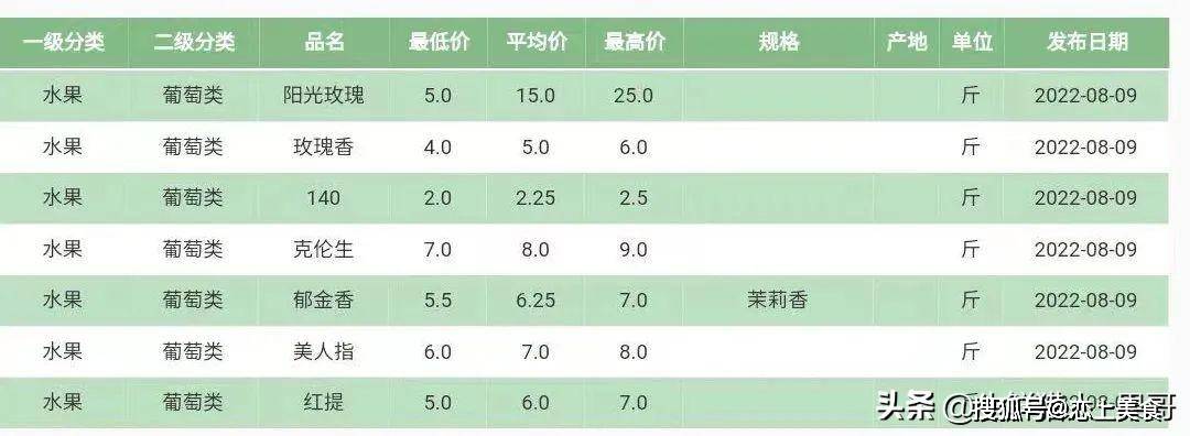 北京新发地葡萄价格行情
