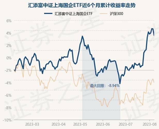 8月7日,汇添富中证上海国企ETF最新单位净值为0.8635元,累计净值为0.8935元,较前一交易日下跌1.17%。历史数据显示该基金近1个月上涨6.6%,近3个月上涨1.22%,近6个月上涨7.04%,近1年上涨9.36%。该基金近6个月的累计收益率走势如下图: