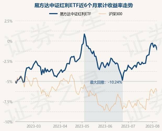 8月7日,易方达中证红利ETF最新单位净值为1.3507元,累计净值为1.4967元,较前一交易日下跌0.87%。历史数据显示该基金近1个月上涨4.33%,近3个月下跌1.4%,近6个月上涨7.8%,近1年上涨13.28%。该基金近6个月的累计收益率走势如下图: