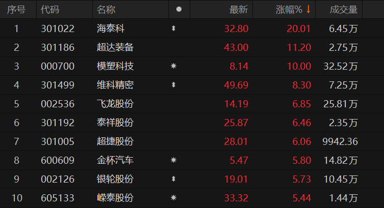 原标题:汽车零部件概念股快速拉升 海泰科涨停