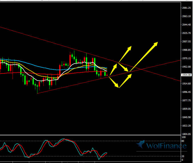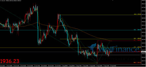 国际黄金周一冲高回落震荡收跌,周二凌晨金价小幅反弹再度企稳于1936一线窄幅整理。小时线显示,短线金价逐步走低企稳于小时线技术指标压力位价格下方,短线下行维持震荡走势,当前再度回踩技术指标压力位一线,形成压力位窄幅整理。