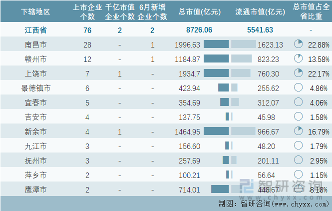 2023年6月江西省各地级行政区A股上市企业情况统计表