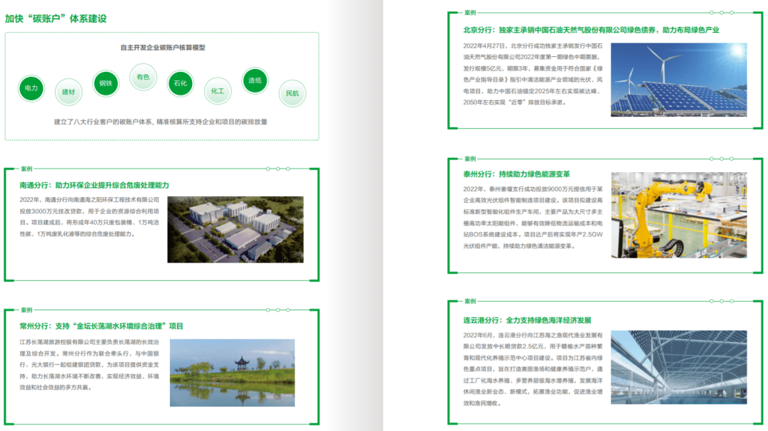 该行自2021年成立了由行长牵头的总行绿色金融办公室,并成立绿色金融事业部一级部门专职推动绿色金融工作以来,一直在不断积极支持清洁能源、节能环保、清洁生产、生态环境、基础设施绿色升级、绿色服务等绿色产业重大项目。