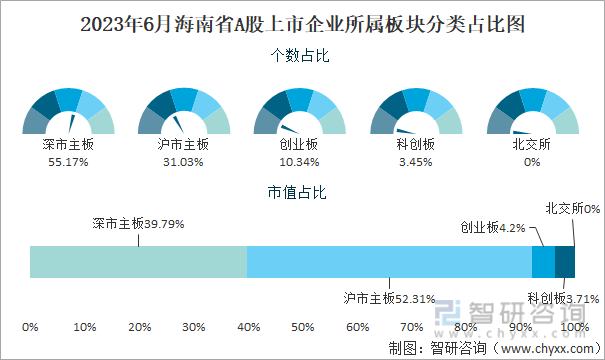 2023年6月海南省A股上市企业所属板块分类占比图