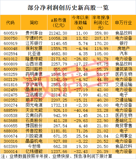 上半年哪些公司净利润有望创历史新高?
