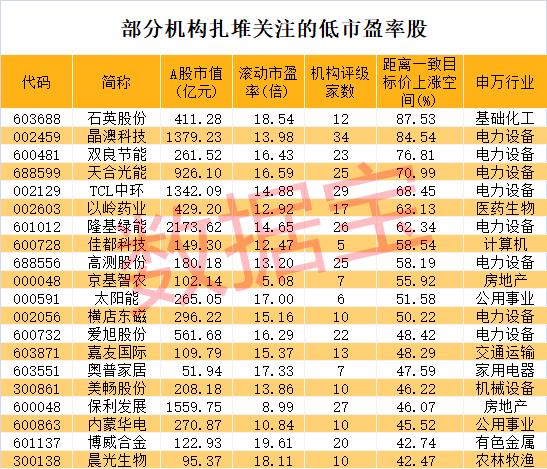 低市盈率+机构扎堆关注股名单