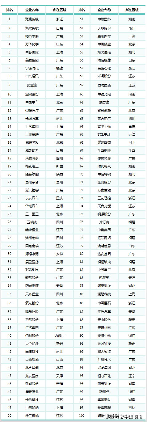 2022年制造业上市公司高质量发展百强。(资料来源:中国信通院)