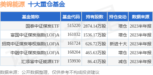 根据2023半年报公募基金重仓股数据,重仓该股的公募基金共5家,其中持有数量最多的公募基金为国泰中证煤炭ETF。国泰中证煤炭ETF目前规模为38.25亿元,最新净值2.0833(8月7日),较上一交易日下跌0.65%,近一年下跌4.55%。该公募基金现任基金经理为吴中昊。吴中昊在任的基金产品包括:国泰中证500指数增强A,管理时间为2022年1月28日至今,期间收益率为-0.34%;国泰中证内地运输主题ETF,管理时间为2022年11月30日至今,期间收益率为-4.42%;国泰沪深300指数增强A,管理时间为2022年12月30日至今,期间收益率为2.06%;国泰沪深300指数A,管理时间为2022年12月30日至今,期间收益率为6.04%。