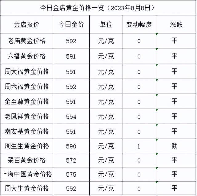 具体各大品牌金店最新价格见下表格: