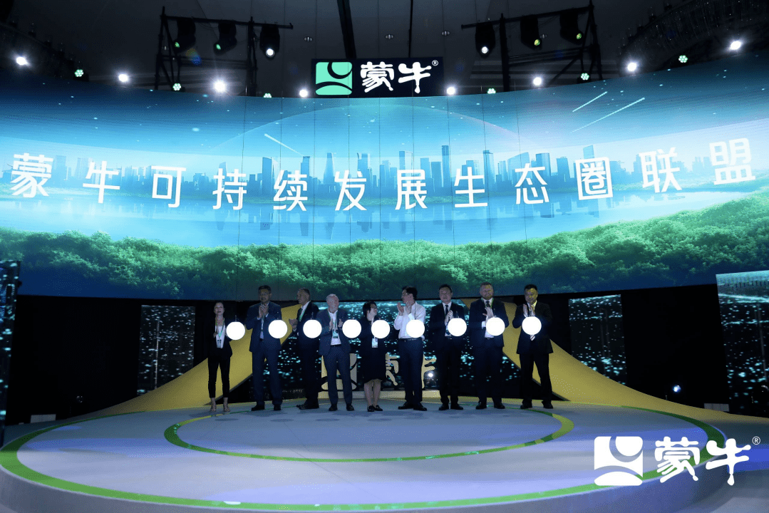 大会现场,蒙牛携手院士专家以及全球合作伙伴,结成可持续发展生态圈联盟、SNDA科学家联盟和数智创新生态联盟“三大联盟”,并举行签约仪式,为共同的梦想加速。