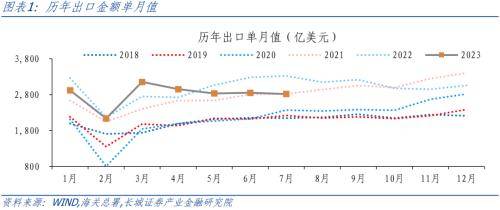 我们在6月份外贸数据点评提示,三季度出口同比降幅还有进一步负增的压力。实际上7月出口金额同比下降14.5%,比6月的-12.4%降幅进一步扩大,符合我们的预期。今年的出口金额除了3月份出现短暂回升,之后数月出口金额整体上出现小幅回落的趋势,再叠加去年高基数因素,7月份出口同比降幅再创今年新低。商品结构上看,汽车是出口的亮点和支撑,分国家看,俄罗斯对我国出口拉动维持正值,对我国出口形成支撑。