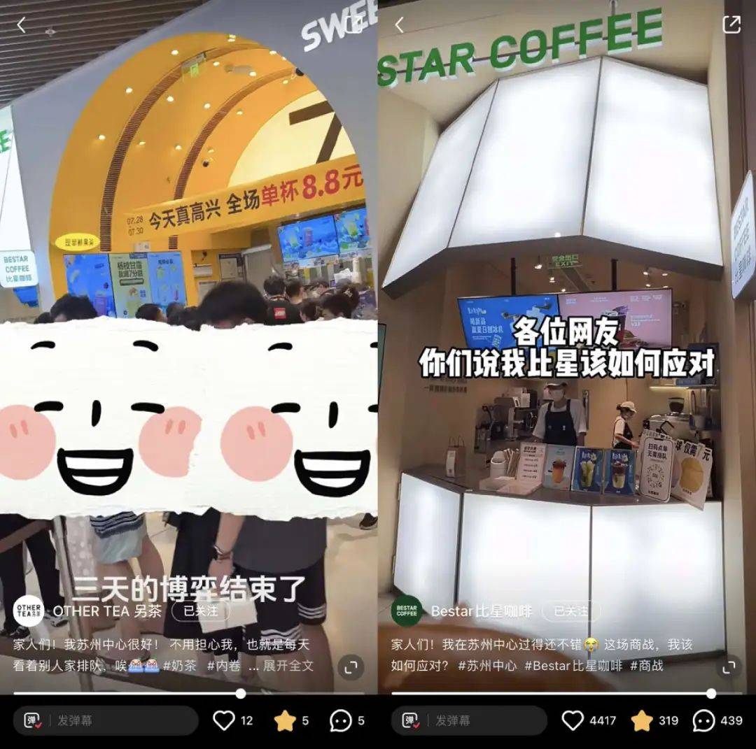 也有网友发现,受到这波团战影响,不仅没参与进来的另茶和比星咖啡没什么人,连新开不久的马伍旺都没什么人。3天的价格战结束后,另茶和比星官方也不约而同地发了视频,一个表示“家人们!我在苏州中心很好!只不过是每天看着别人家排队罢了……”,另一个表示“这场商战,我该如何应对?”
