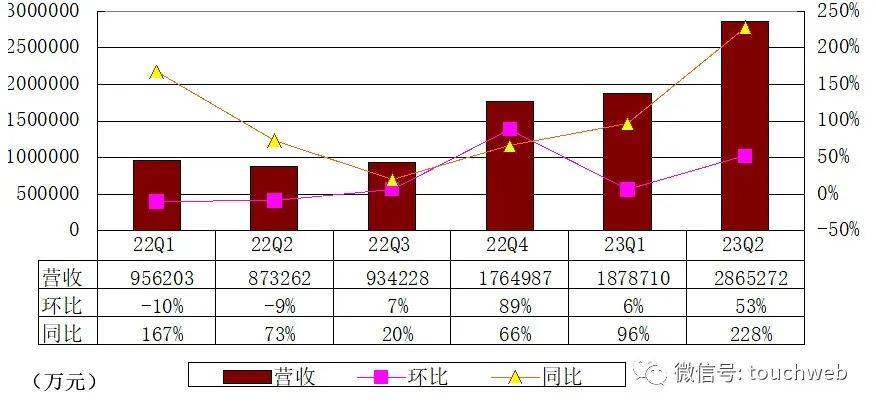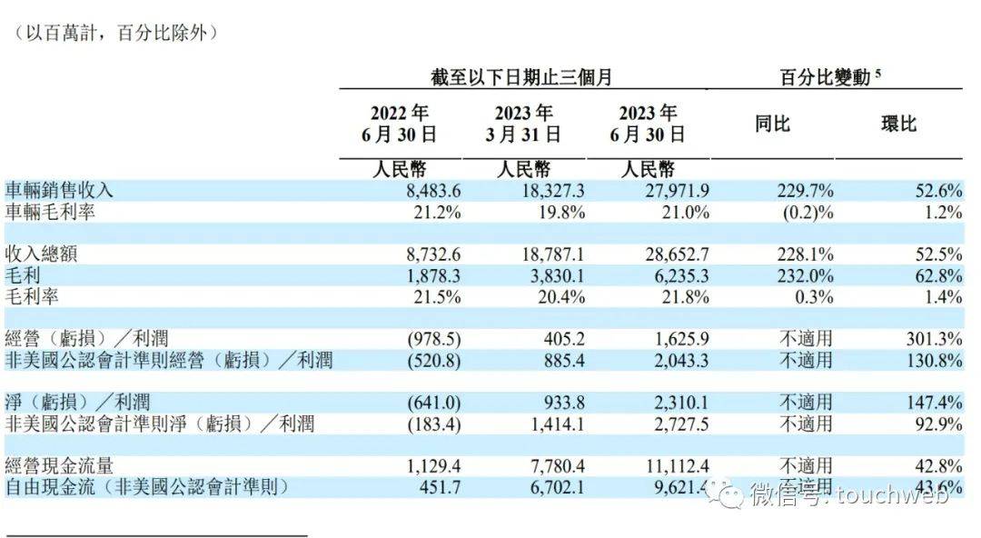 理想汽车2023年第二季营收286.5亿(39.5亿美元),较2022年第二季度的87.3亿元增加228.1%,较2023年第一季度的187.9亿元增加52.5%。